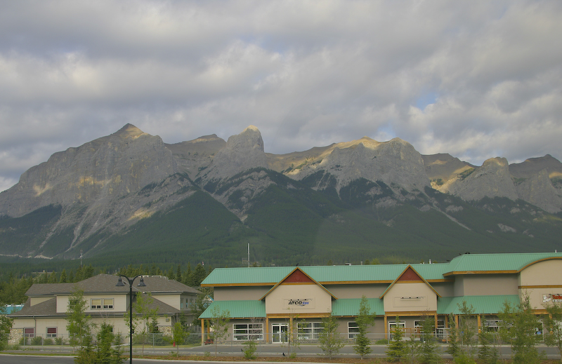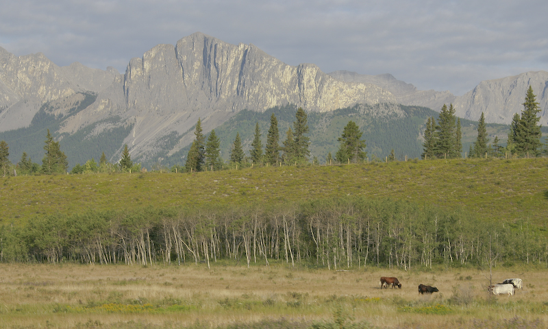 Our first view of the Canadian Rockies was just outside of Calgary and had not only nice rock faces but an aspen grove punctuated with cattle.