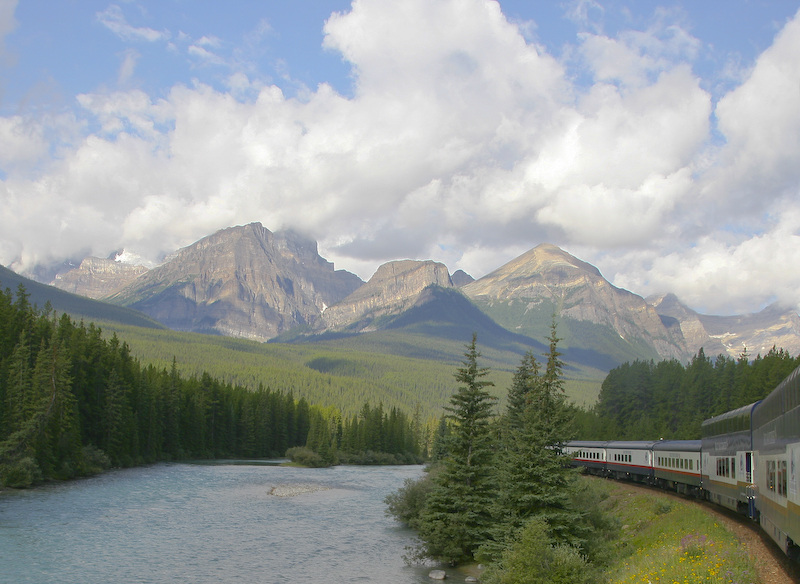 We stopped at a ski town near Banff to pick up additional cabin attendants. These stores were visible from the train with an incredible backdrop of mountains.