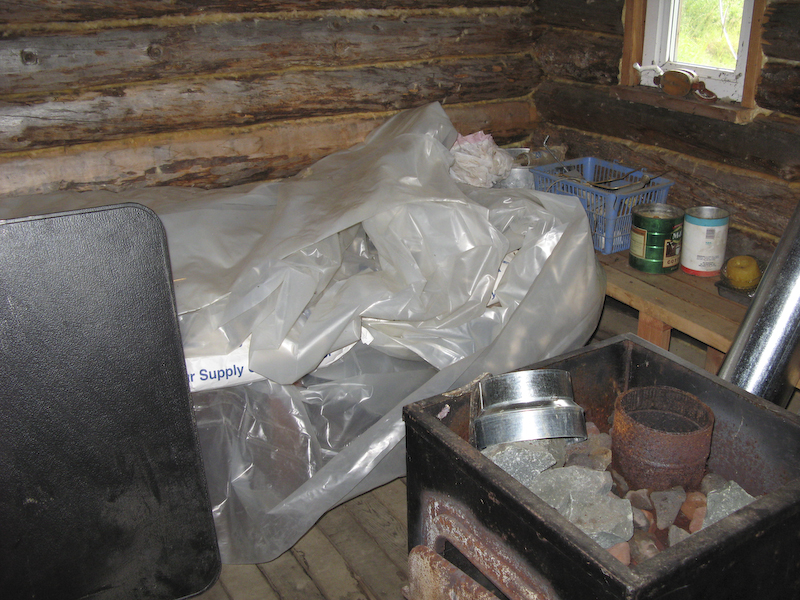 This place is really deluxe despite being rustic. This is the inside of the sauna shack. The heater is wood fired and once the rocks are hot, you drizzle some water on them to create the steam. Currently, the vent pipe is being repaired.