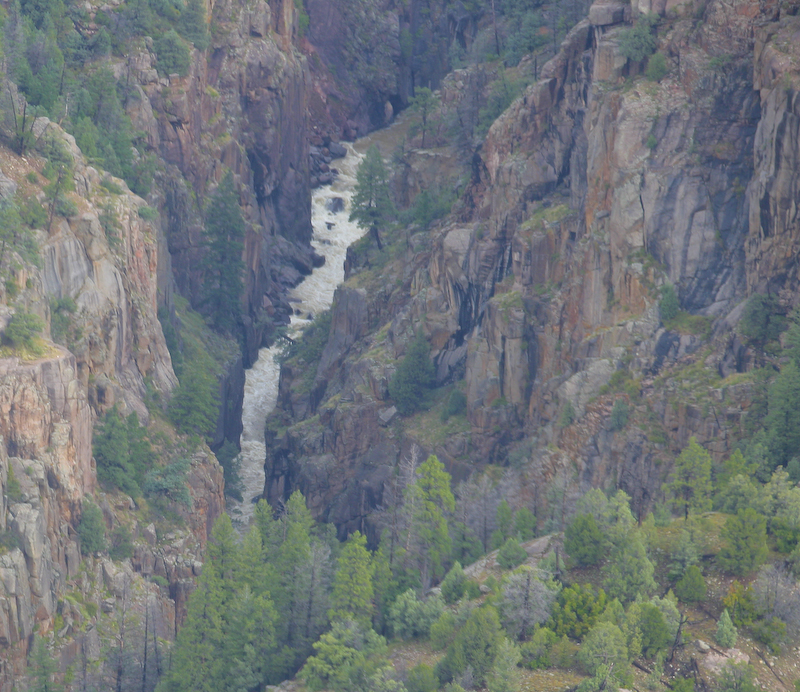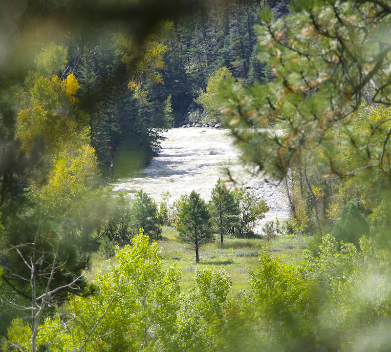 A shot of the Animas River through the trees. The river was still way high from the rains on the previous day. In fact, it was flooding part of the meadow close to the river.