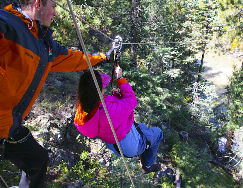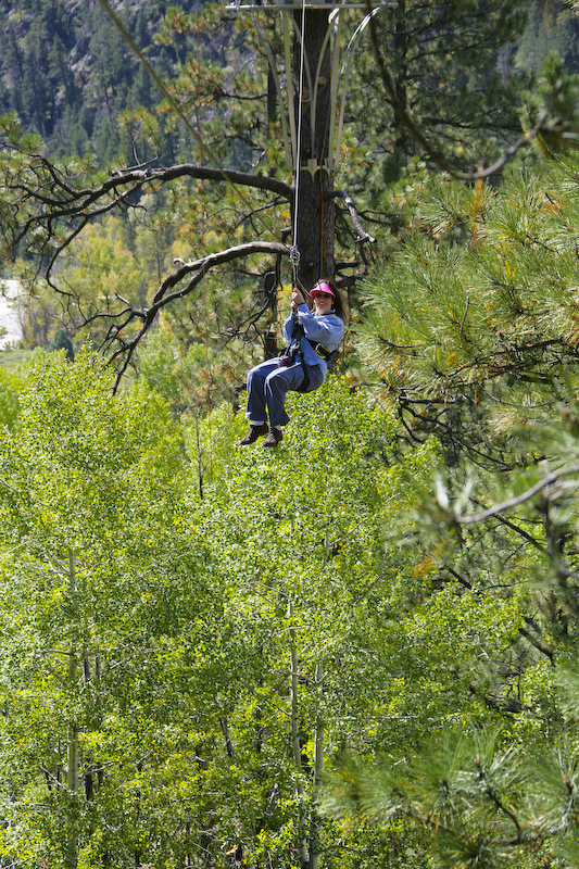Kathleen on one of the early runs. The first runs are short and not very high in the trees. Later runs were long, some in excess of 500 feet with substantial drops between stations resulting in high speeds.