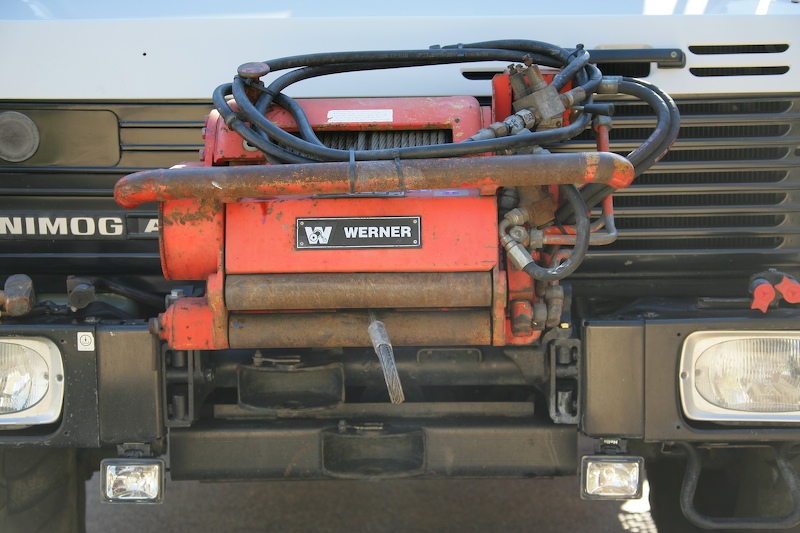 The BAW before removal. This fellow is big, perhaps 1,000 pounds including the cable and hoses. John brought the winch from Georgia from Sean Philyaw, a well-known and respected supplier of Unimogs.
