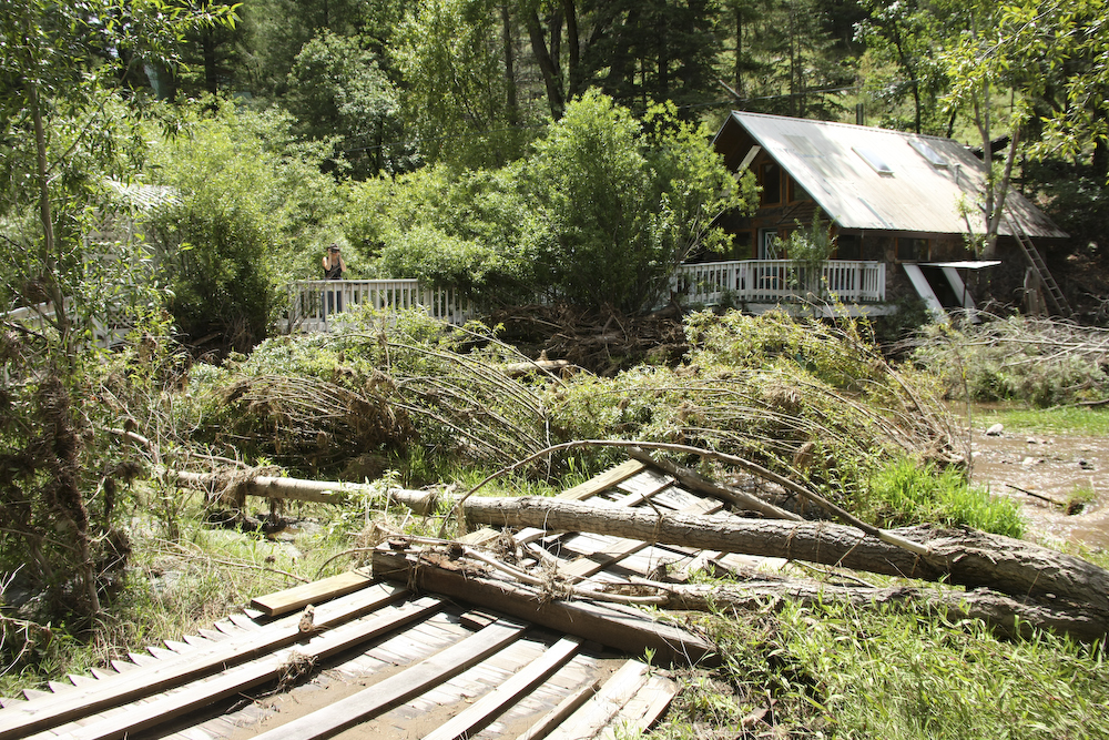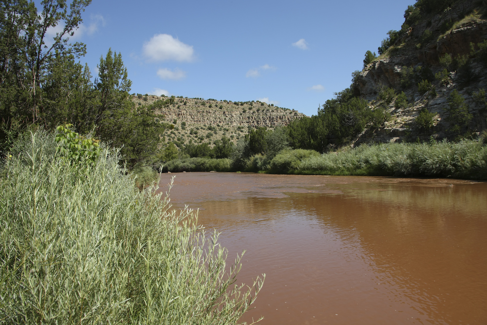 The Pecos River comes down from the high country in the Sangre de Christo mountains to the east of Santa Fe. The river was red with silt from the recent rains.