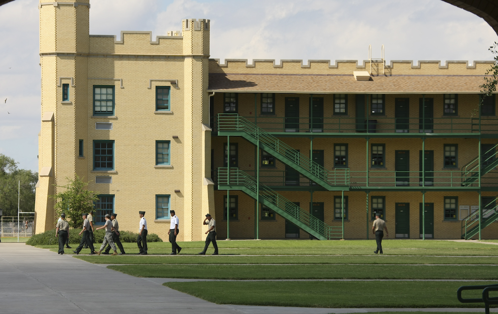 Been there, done that. These fellows are "walking tours" which is a disciplinary action. A "tour" is 60 minutes of marching around the quadrangle. Wasting your time, basically. Tours can only be done in your spare time which makes them rather painful. Something odd is going on here as these fellows are not even in step. Perhaps cadets these days are less fastidious or perhaps my memory is failing.