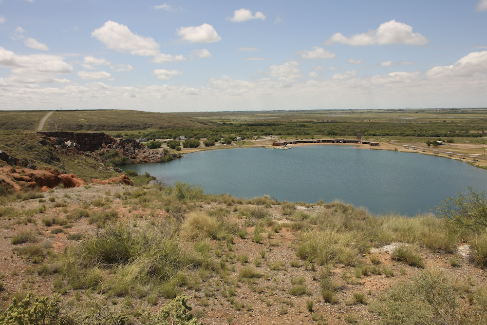 Bottomless Lakes are so named because they have not fully plumbed the depths of the water. The lake is spring fed and is actually a sink hole into the Permian limestone which is the caprock in the area. There are a number of these lakes along the uplift line visible as the hillside above. Except for the rain and strong winds, the stay was pleasant with nice clean amenities.