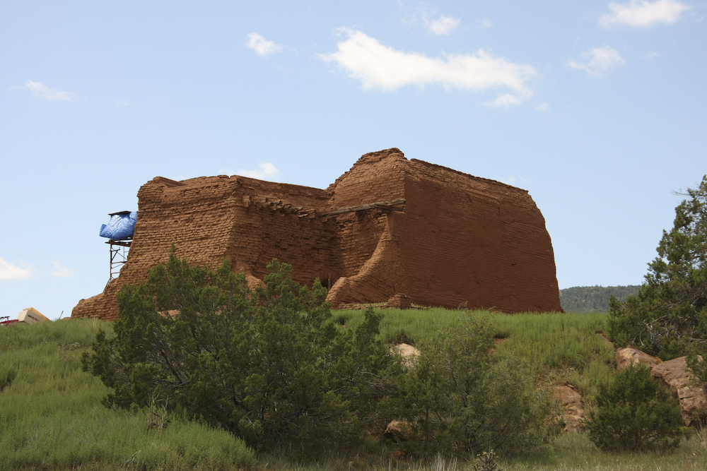 From Villanueva, we headed west toward the Sangre de Christos. Along the way, we passed the Pecos Pueblo ruins that were under restoration so we stopped for a look. Above is the main church that was built by the Spanish after conquering the local tribes.