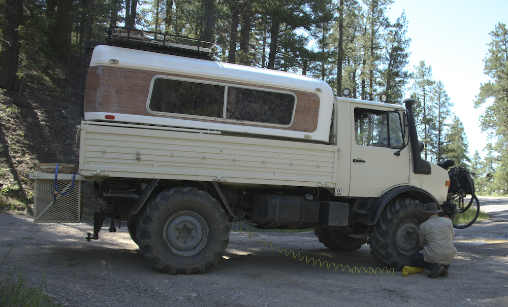 We aired down for the road as it was quite rutted and rough. If air down, then air up. Unless you want a blowout. Happily, the mog has an on-board air pump that makes adjusting air pressure possible.