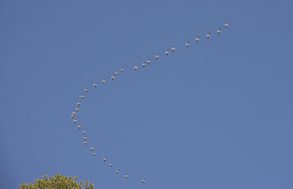We spotted this group of pelicans heading generally southward, perhaps for the winter.