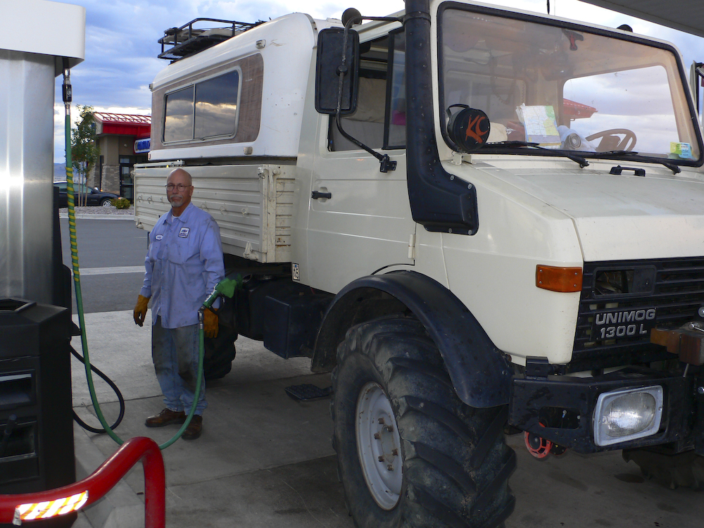 Out of the garage finally. I purchased an infrared thermometer to keep track of wheel temperatures and we set out to get a tank of diesel at the local station.