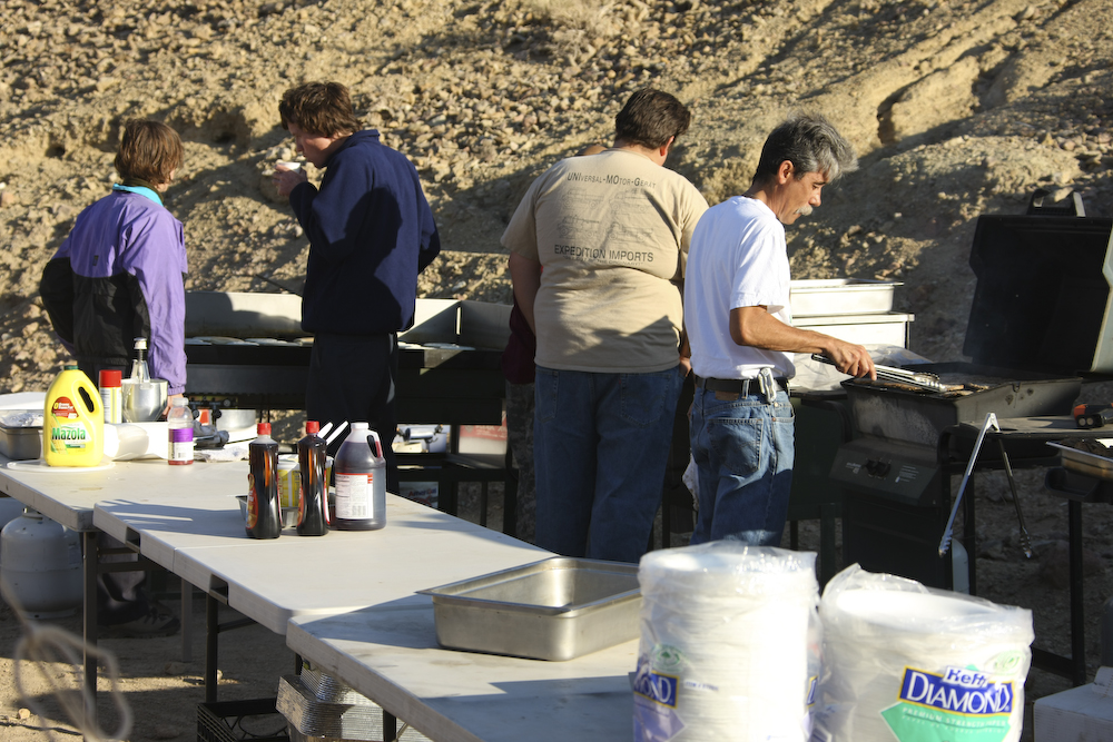 These guys were the caterers for lunch. In the back of their rig is a pizza oven and they made hot calzone sandwiches for about 100 folks high on the hill in the blowing dust.
