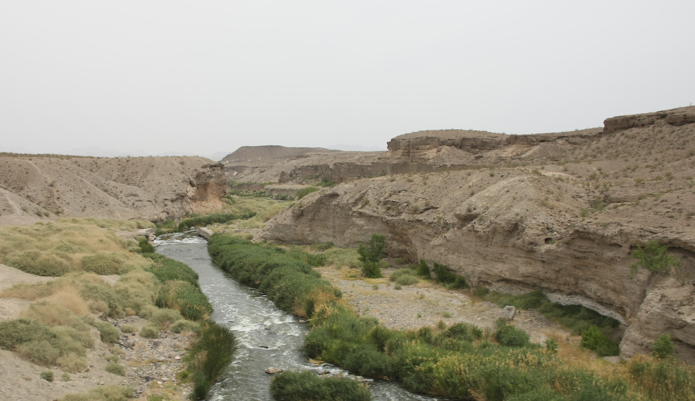 This is the outflow from Lake Las Vegas into Lake Mead just below. Note that the vegetation exists only within a few feet of the water line due to the poor permeability of the soil.