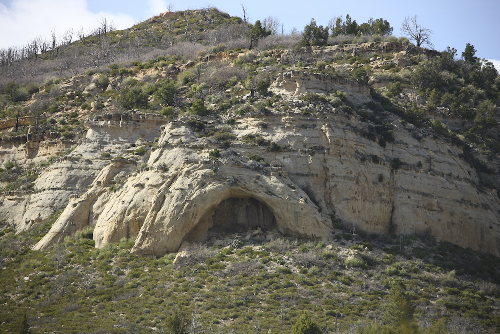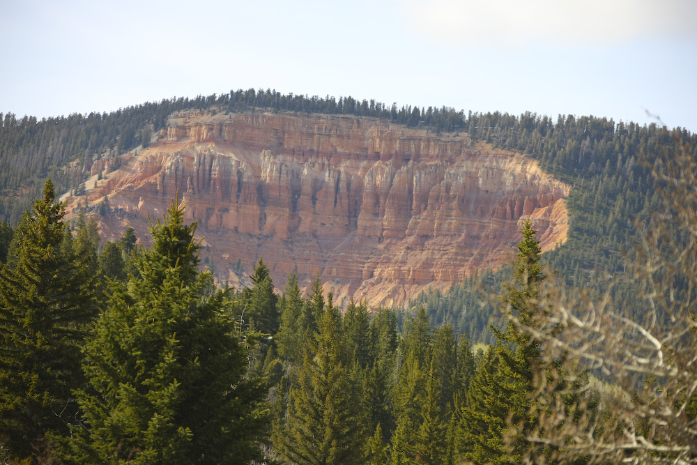 On the east side of the tunnel, the road is on top of the canyon providing better views of the structure of the cliffs.