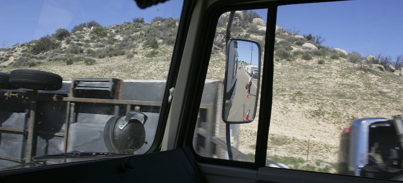 On the return to San Diego, near Ranchita, we passed this overturned pickup-trailer combo. This is a poor photo, but it was the best I could do since I was steering, braking and attempting to point and focus the camera without putting it to my eye. That said, if you look carefully, you can see the police, Kai and Parker in Ural in the side mirror. The object in the lower right hand corner of the photo is the underside of the rear bumper of the tow vehicle. Since this section of road is flat and straight, it is a mystery to me why this fellow overturned. I guess that we will never know.