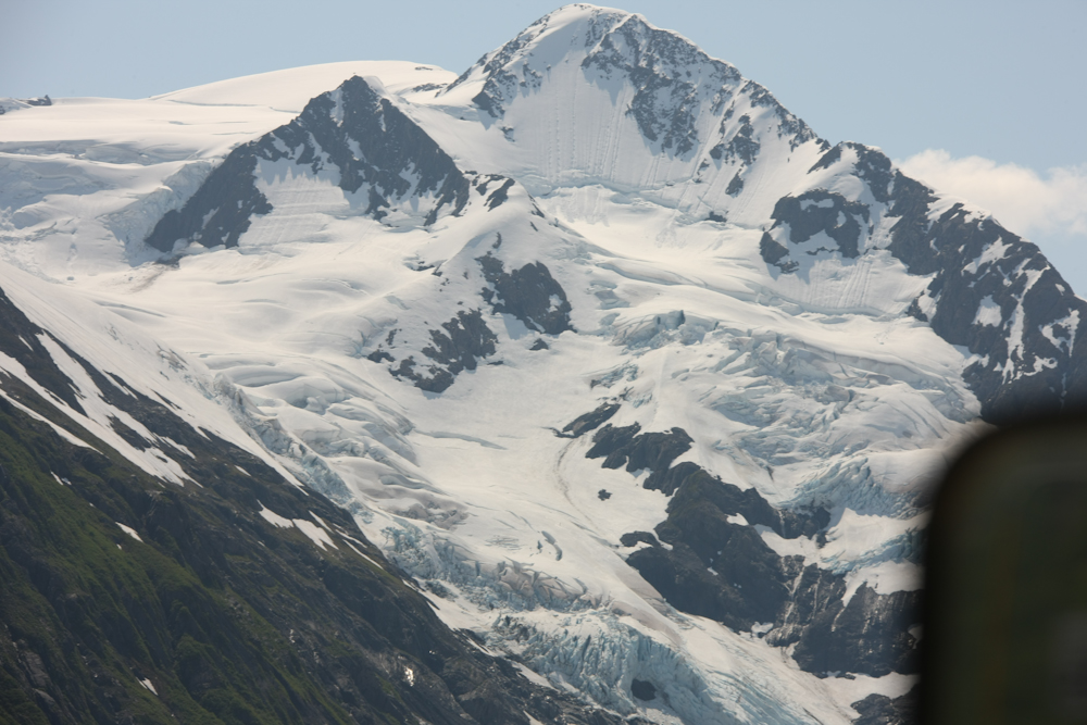 The road to Whittier goes past Portage Glacier, and many others. Note the light blue color of the water due to the rock flour from the glacial runoff.