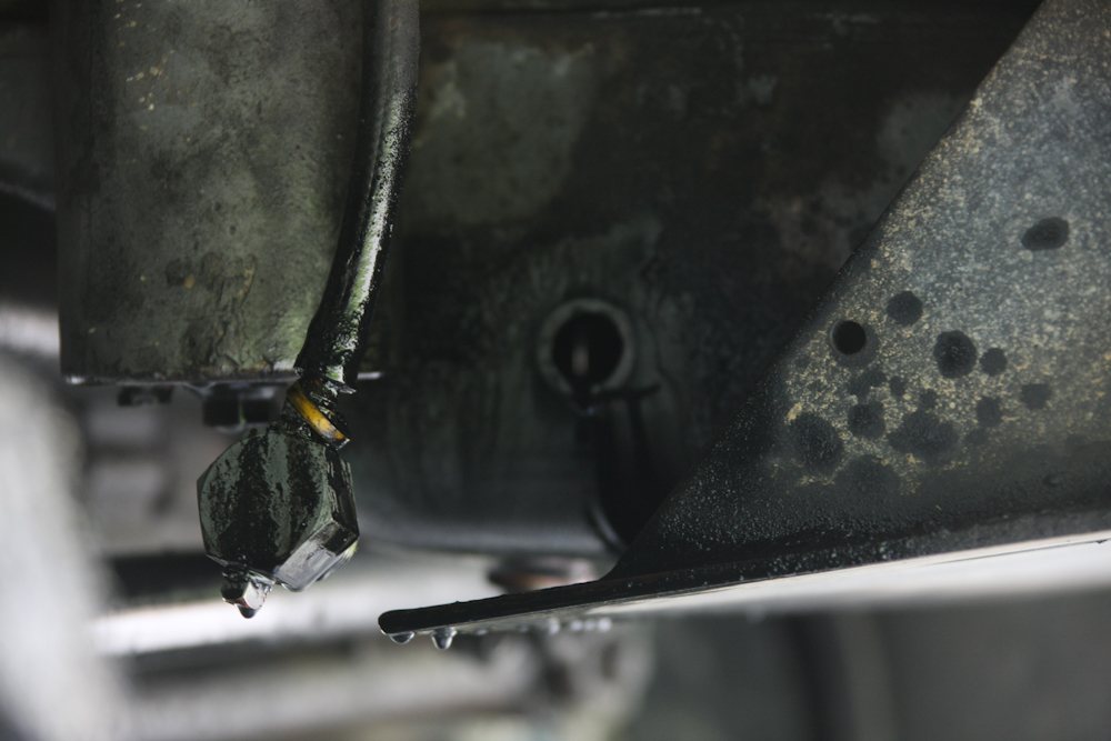 Houston, we have a problem. We were climbing up Eklutna Lake road toward our camp for the night and I HAD to execute a bio-break. When I hopped from the cab I noticed that the engine oil was gushing onto the ground. I stopped the engine immediately and never heard the sound of the motor change. And since, plenty of oil flowed from the hole after the engine was stopped, there was probably no damage to the motor. That would have to be proven once we get the hole addressed and more oil in the engine. This hollow bolt was part of the pre-luber oil intake that was installed more than 10 years ago. It seems that the nut inside the oil pan decided to come loose.
