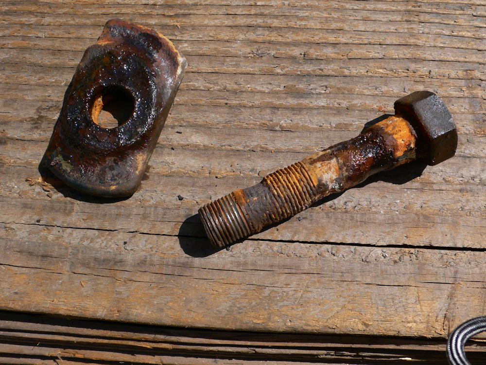 Because it was installed incorrectly, it allowed things to move around and wear the bolts. As you can see, the bolt is well past the end of its useful service life. Due to the corrosion, getting the nut off the bolt was really tough.