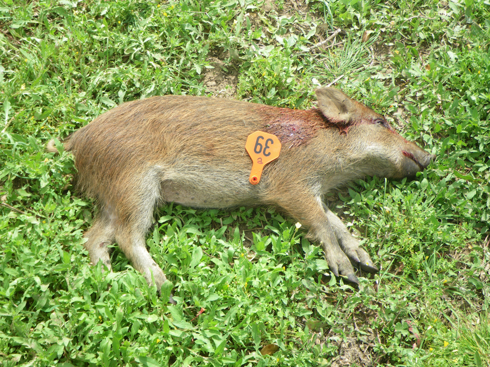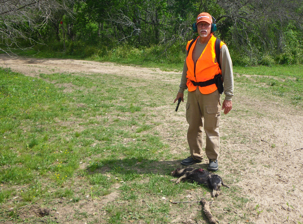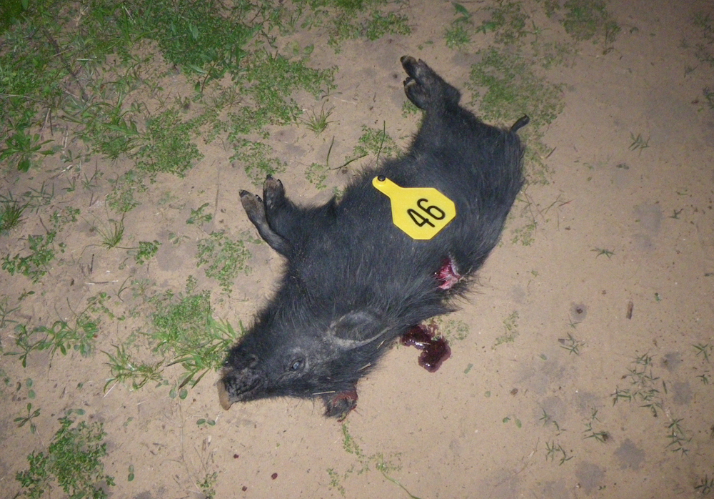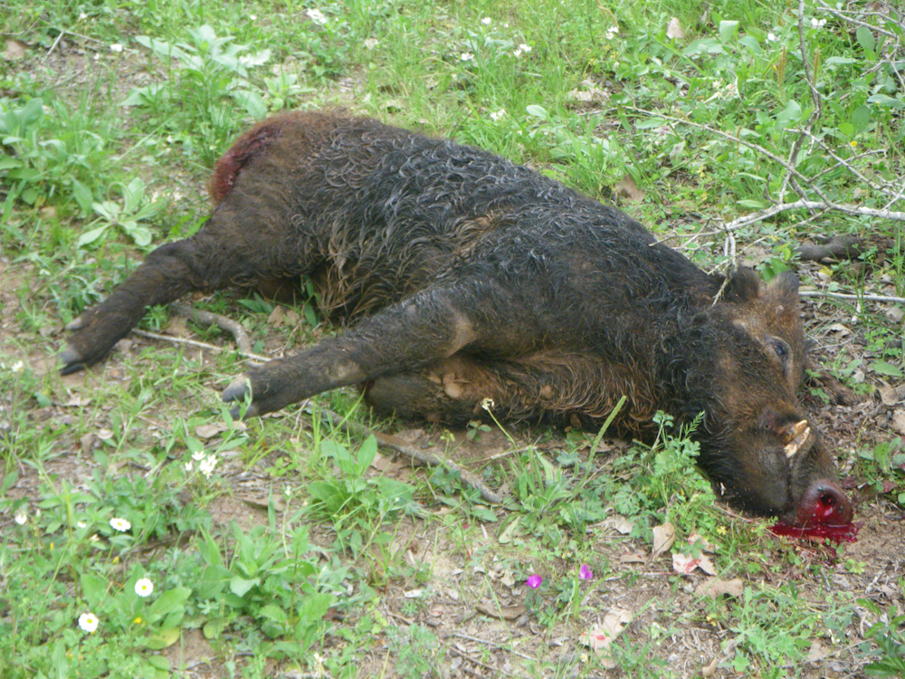 As Kathleen shot her hog, another big one started toward us.  She was focused on her hog and I took my .45 and tagged this fellow.  He is pretty big, but not as big as hers.