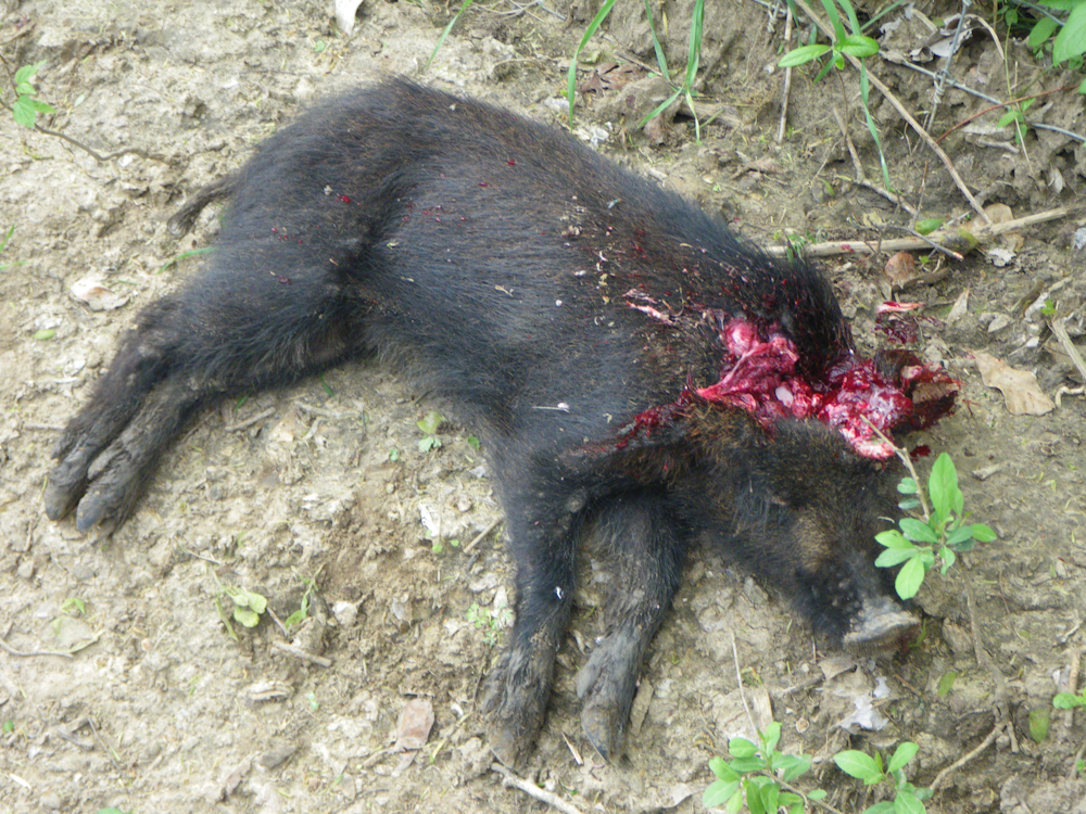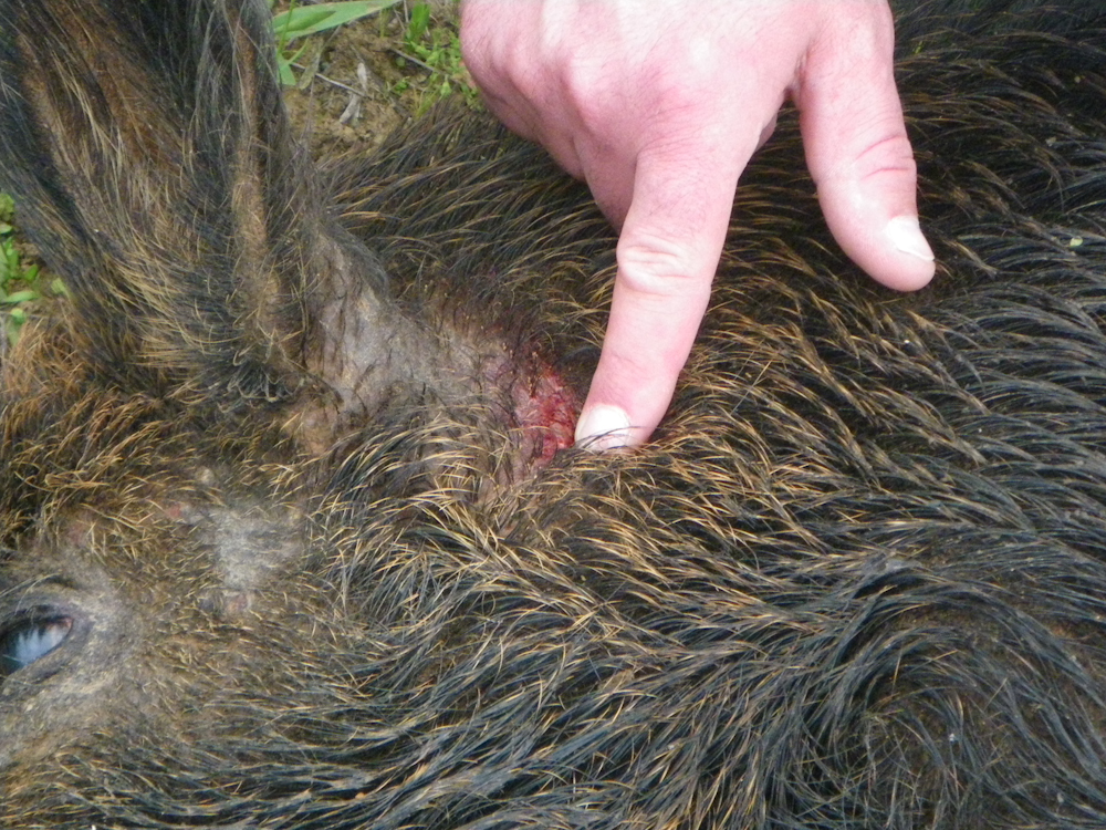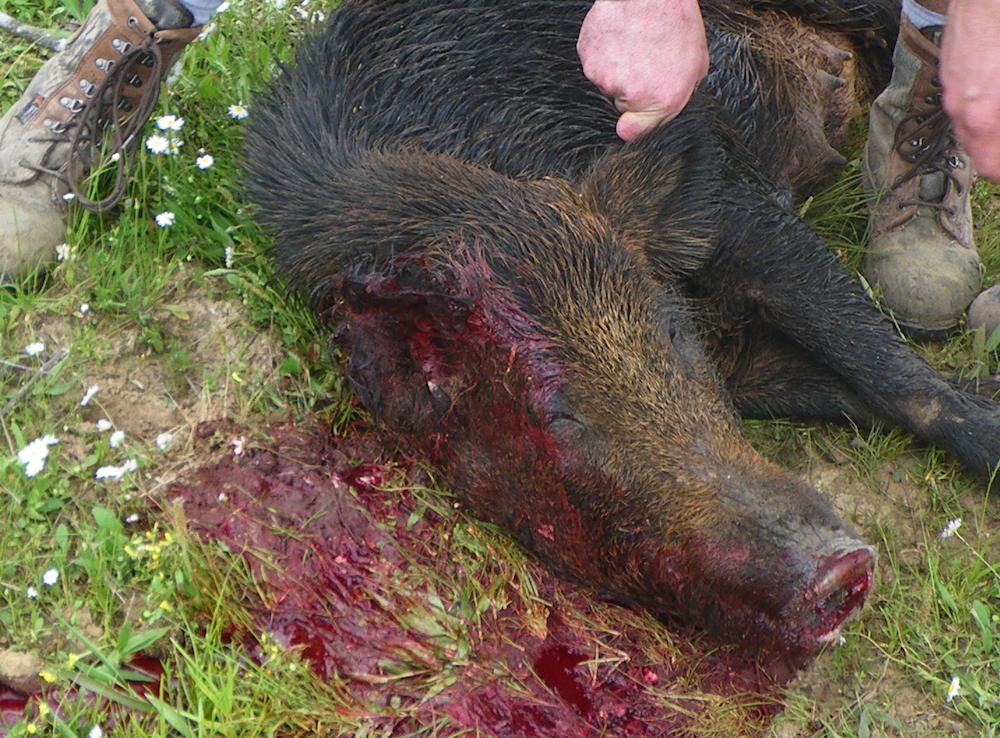 The .30-06 left a massive exit wound on the other side of the hog's neck.