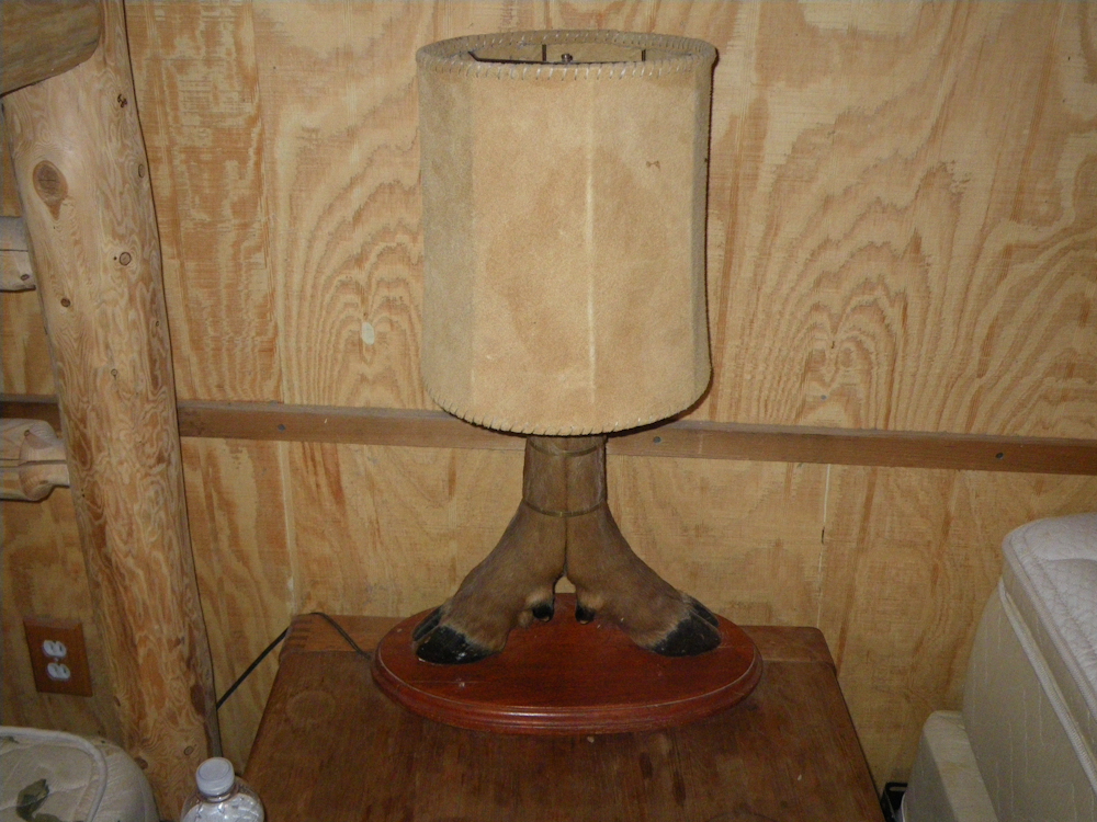 The ranch house has both bunk houses and small cabins.  Above, the lamp shows basic ranch chic.