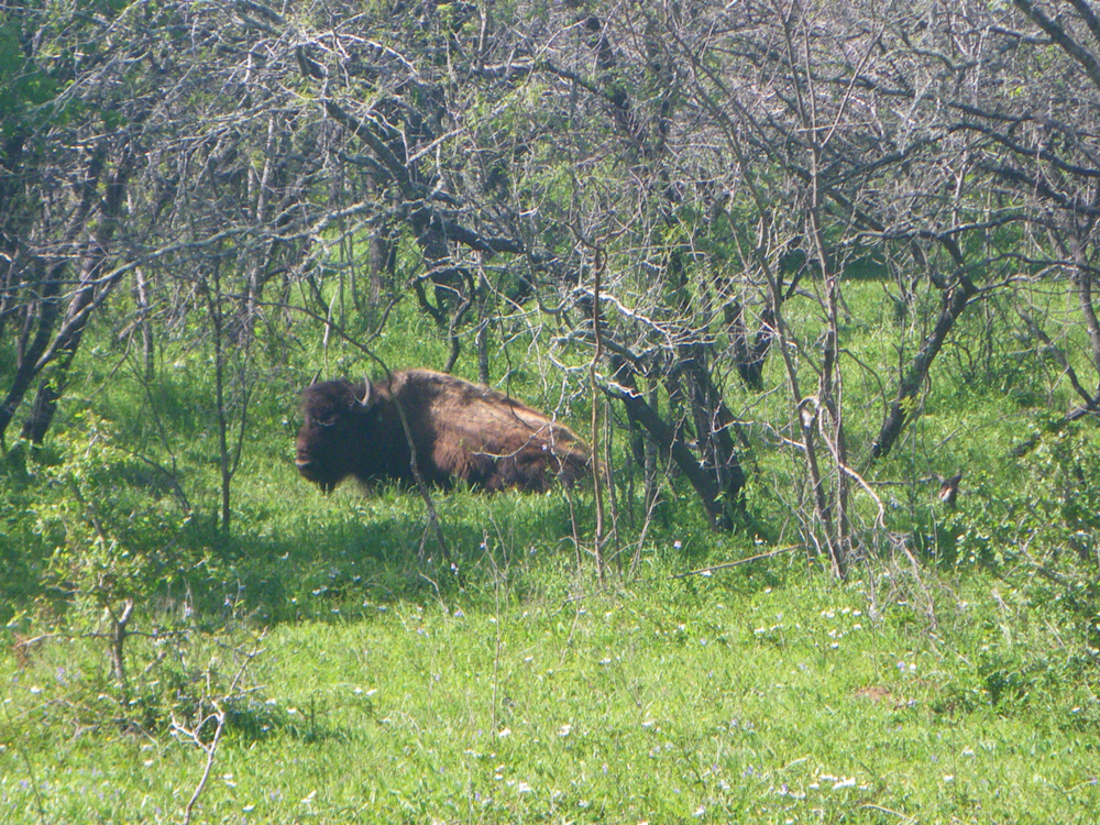 The hunt site was verdant green and on the way to the bunk house, we passed this dozing buffalo.  This was totally unexpected and we passed them again and again on the ranch.