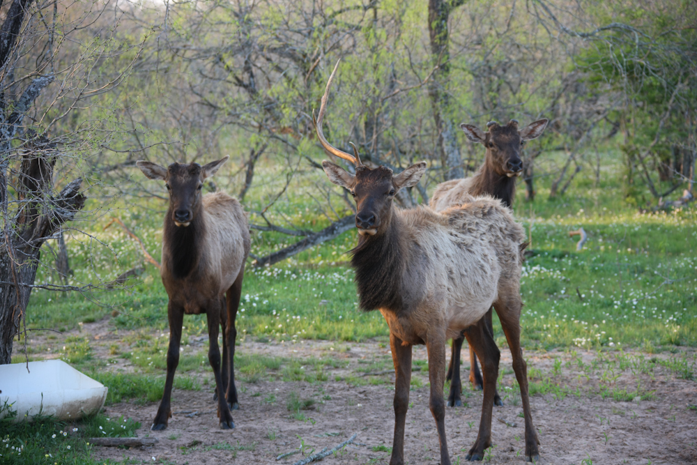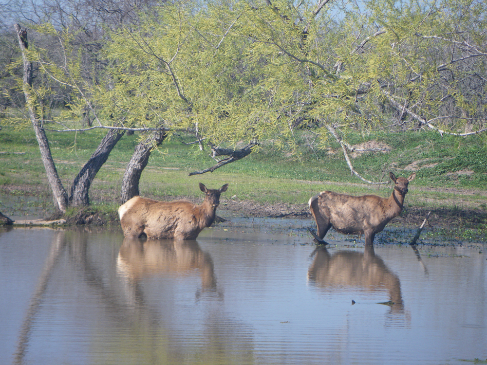As I was trying to recover from seeing the buffalo, we spotted these elks in one of the stock ponds.  It turns out that there are a number of exotic species on the ranch site, some from Africa and Asia.