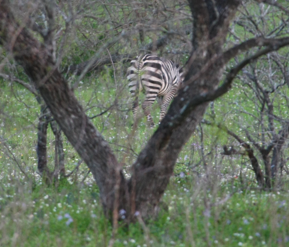 When I saw the zebra hanging out with the horses, I went into overload.  This was the only zebra on the property that we saw.  After we checked in and got settled, we did an afternoon "walk and stalk", which was really a "walk a lot".  We covered the entire perimeter of the 300 acres and saw nothing.  Not a shot was fired.  We returned to the mess hall for dinner and upon completion, we returned to the field for a "blind hunt" where we stayed in a blind scouting for hogs.
