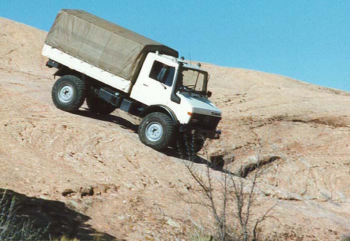 A steep downgrade with broken transmission mounts. Lake Powell area, UT. 2008.