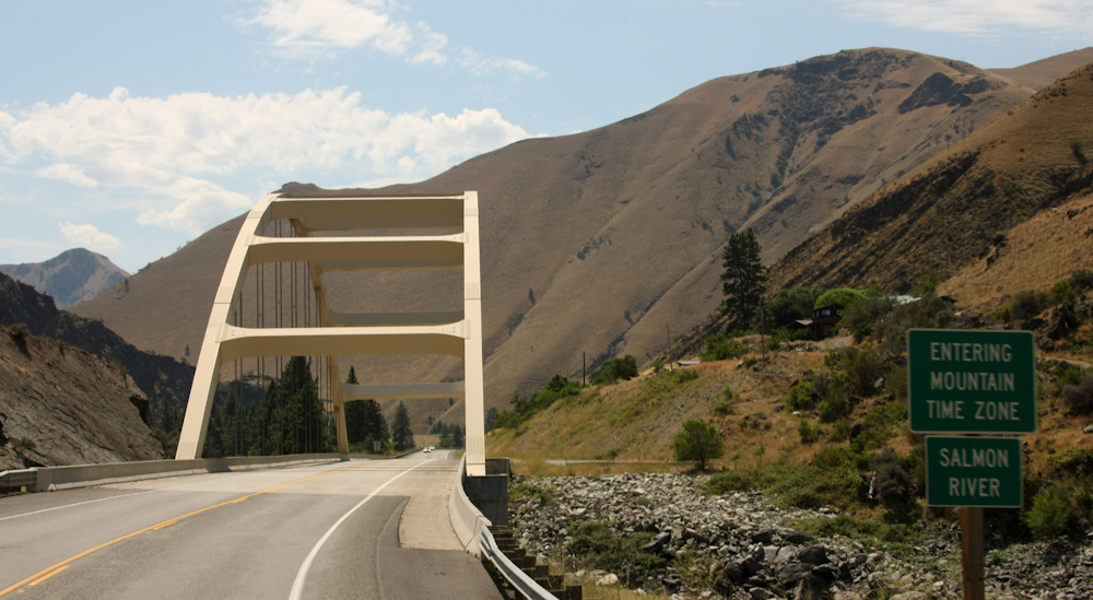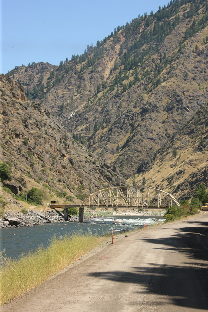 We fueled at Riggins and then headed east on River Road that ran along the banks of the Salmon River. There were only 2 bridges on the road that cross the river; this was one of them.  It was narrow and had weight restrictions but we were compliant.