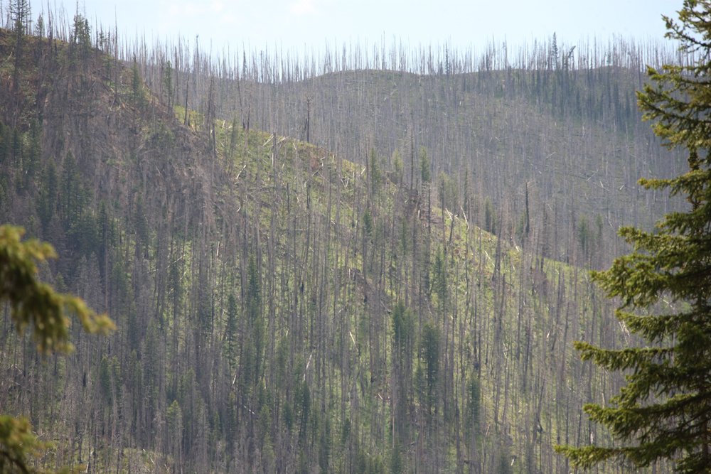 On the opposite ridge we could see the damage from a recent fire.  This would be a recurring theme on this segment of our trip.