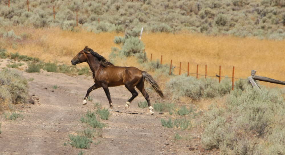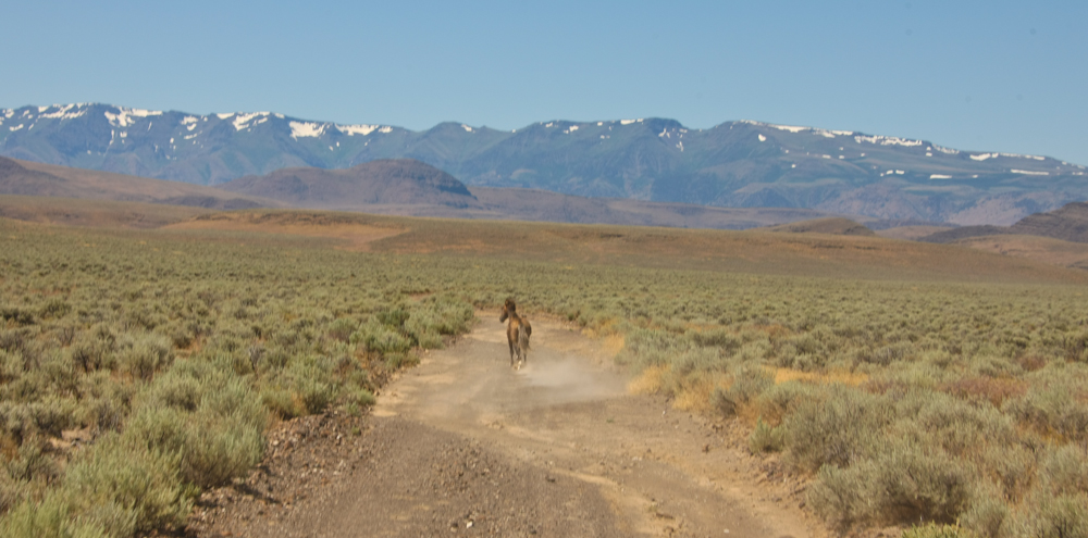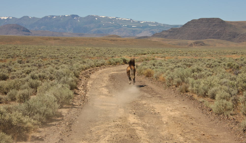 we were rolling down the dirt track, a wild mustang (horse) spotted us