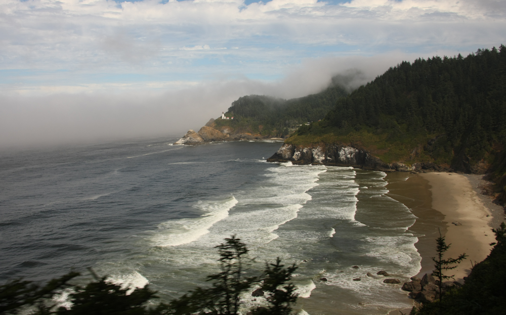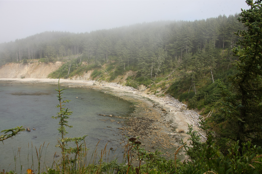 coves were fog shrouded and lined with large drift wood logs.