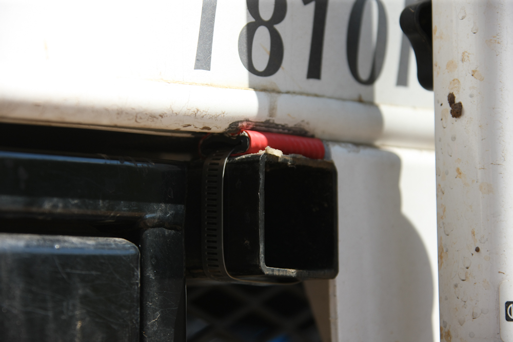 dirt road travel dislodged a rubber snubber on one corner of the