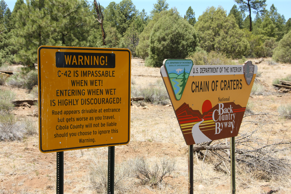 We left El Morro and headed south on a dirt road to see what was around.  We encountered the sign above, a stern warning about travel in adverse conditions.  The road was not bad, but it was dry.