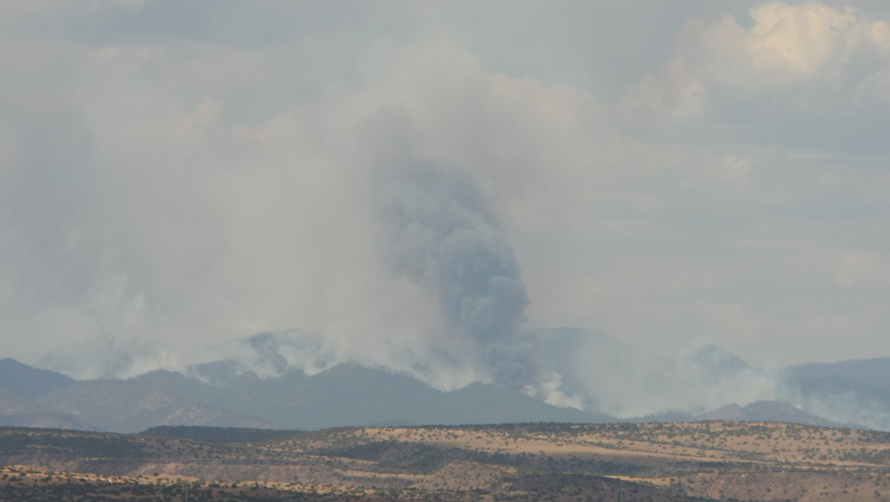 forced the evacuation of Los Alamos, NM was still burning out of