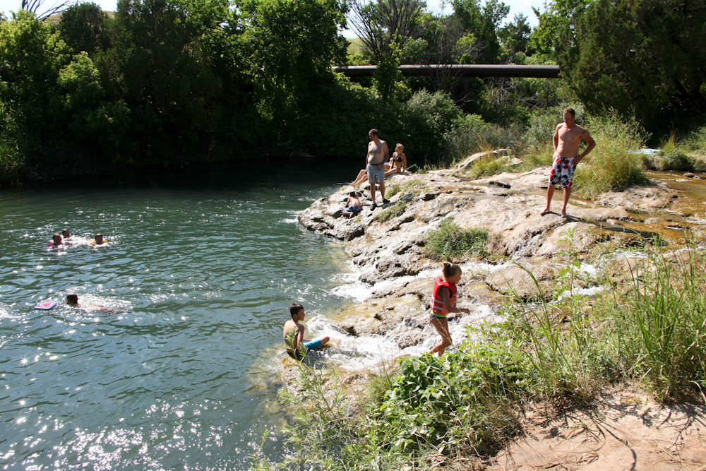 South of Hot Springs, SD we passed a sign on the road for "Cascade Falls".  Expecting something significant, we turned around and went back to check it out.  The site was the local swimming hole; the "falls" were about 3 feet.