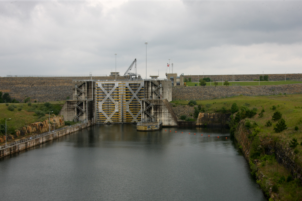lock control tower was built out of poured concrete.