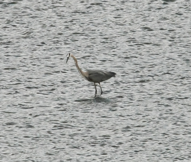 shallow water in the tailrace pond allowed this heron to stand on