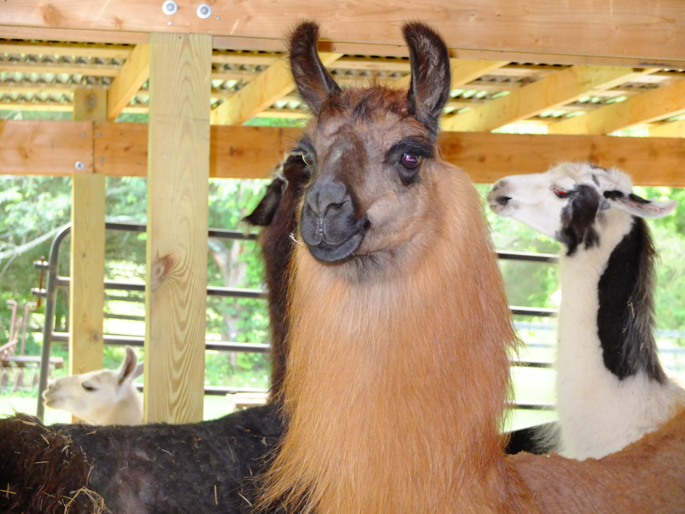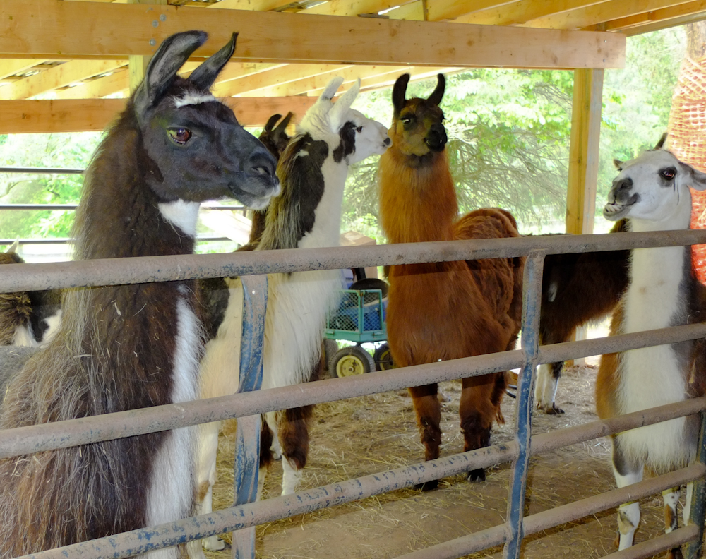llamas were very interested in the new visitors to their area.