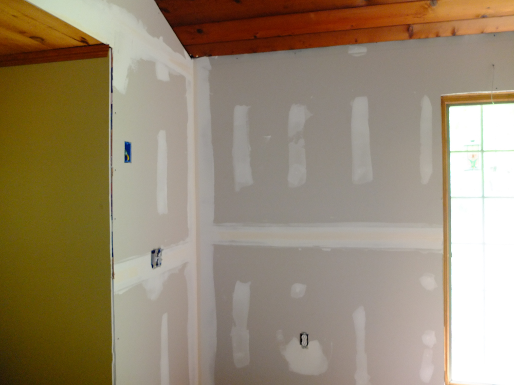 wall was installed and spackle was applied in preparation for