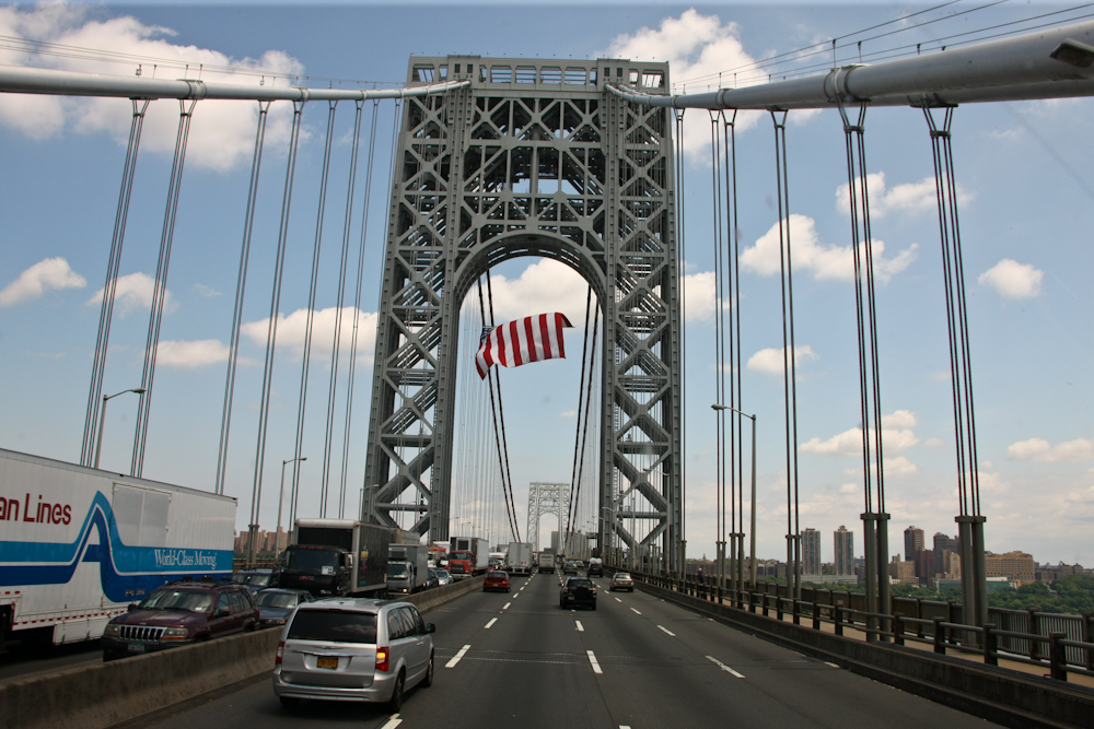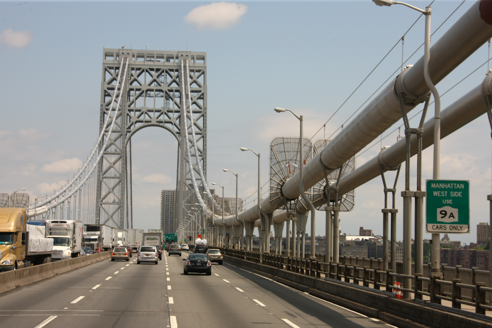 approach to the George Washington Bridge over the Hudson River, we