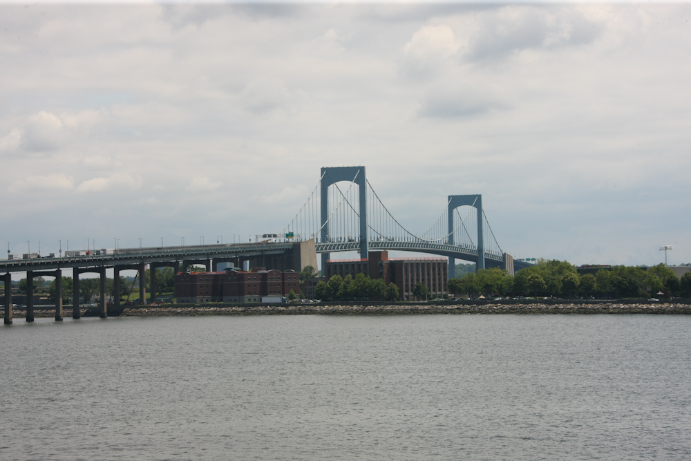 The Bronx-Whitestone Bridge as seen from the approach to the Throgs Neck Bridge. This bridge also goes over the Sound.