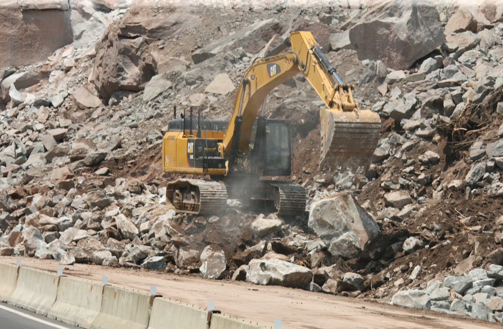 Just as we passed, the trac-hoe above dropped that huge boulder.  We were surprised that it could actually move it due to its size.