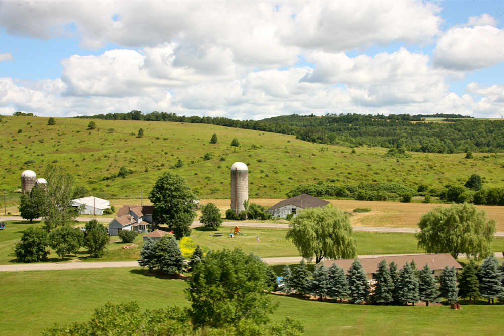 Next morning, we headed northwest again.  From the road we could see wind power generation towers on the hilltops.