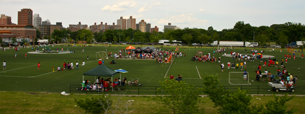 We turned north toward the Bronx and passed this field full of soccer players.  Note the apartment buildings in the background of the photo above.