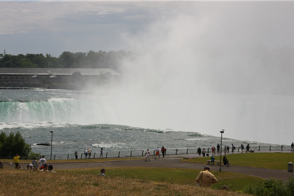 It was overcast and sprinkling so the lighting was sub-optimal for good photos.  But, despite the hindrance, the photo above gives a pretty good feeling about the scale of Horseshoe Falls.  Mist created by the falling water obscures a majority of the structure of the falls.
