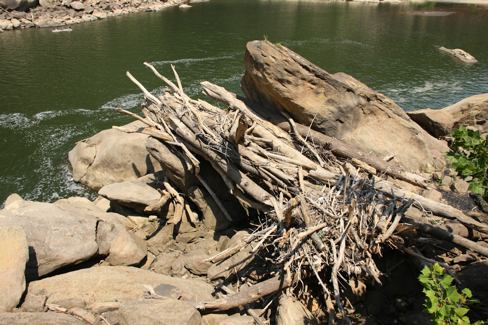 The side of the river channel had debris dams that were 20+ feet above the current level of the river.  Signs indicated that the flow of the river has been observed from 5 cfs to 65,000 cfs.