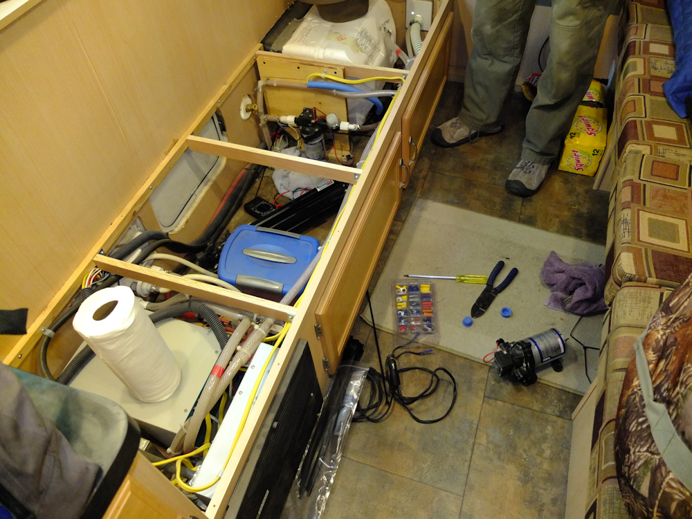 Our water system stopped working.  My first thought was that the tanks were dry despite our adding water.  But the truth was the water pump had given up the ghost.  We had a spare with us, so we replaced the bad unit.