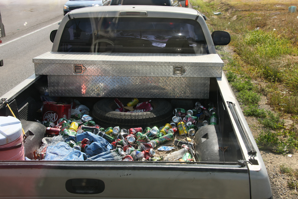 Jed was in front of us driving a rolling dumpster.