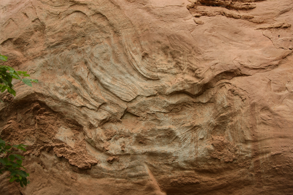 this odd pattern in the sandstone wall.