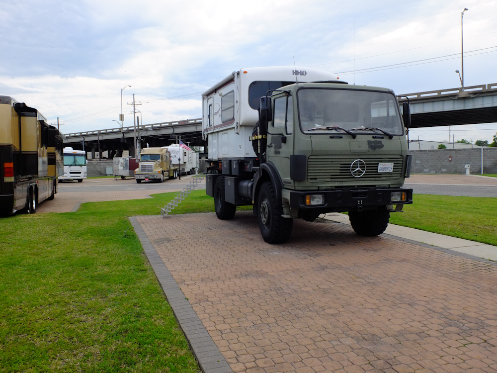 FQRV is pricey, but it is so close to the action in the French Quarter that it attracts the high-end crowd.  There were some very nice, and expensive, RVs in this park.  We met many of the owners at the hot tub and our trucks produced some interesting conversations.